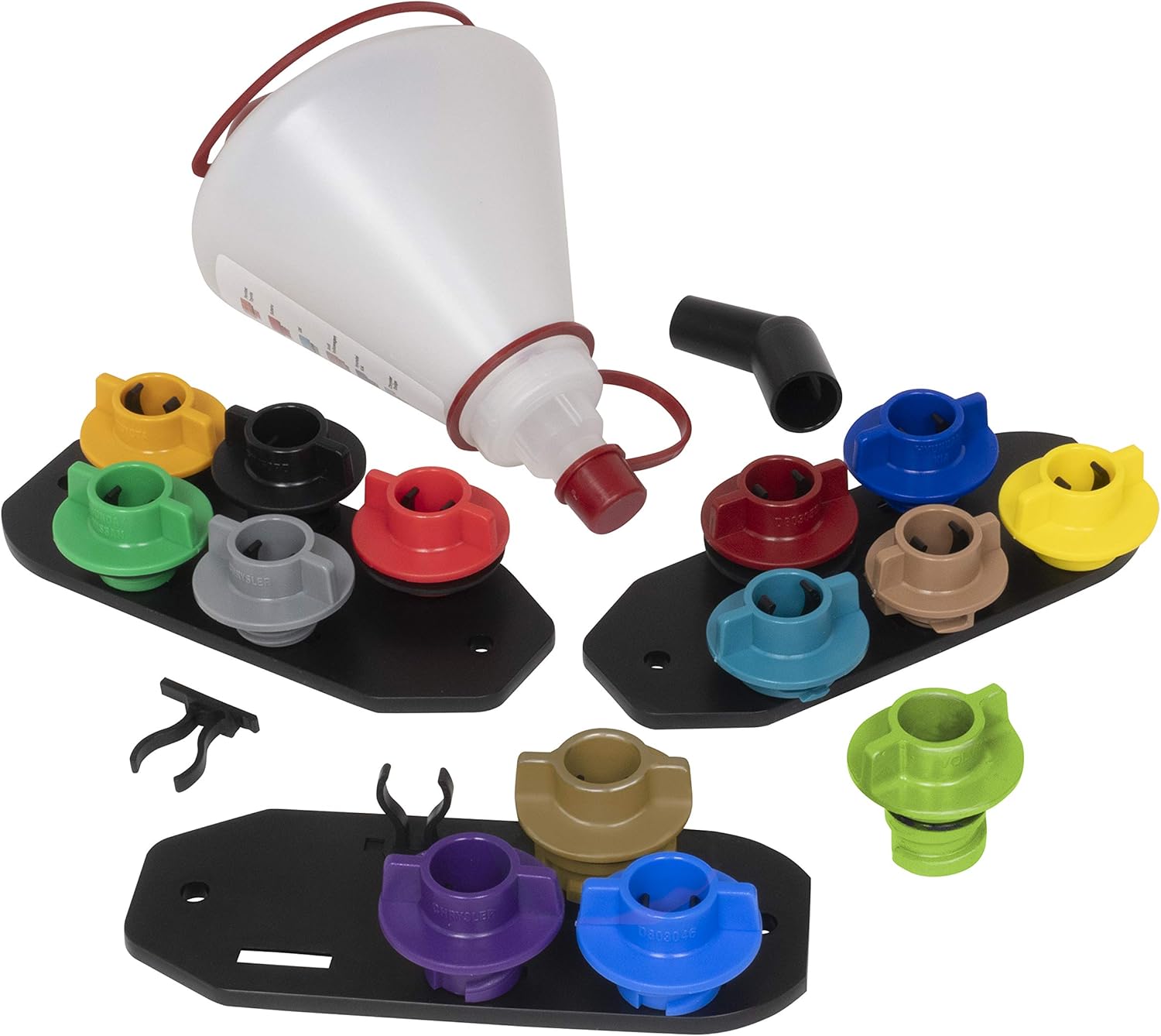 The adapters fit crankcases securely. Tethered lid and cap keep the funnel clean..Fit type: Vehicle Specific
