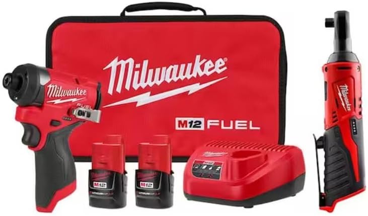 Milwaukee M12 FUEL 1/4inch Hex Impact Driver Kit with 3/8inch High Speed Ratchet